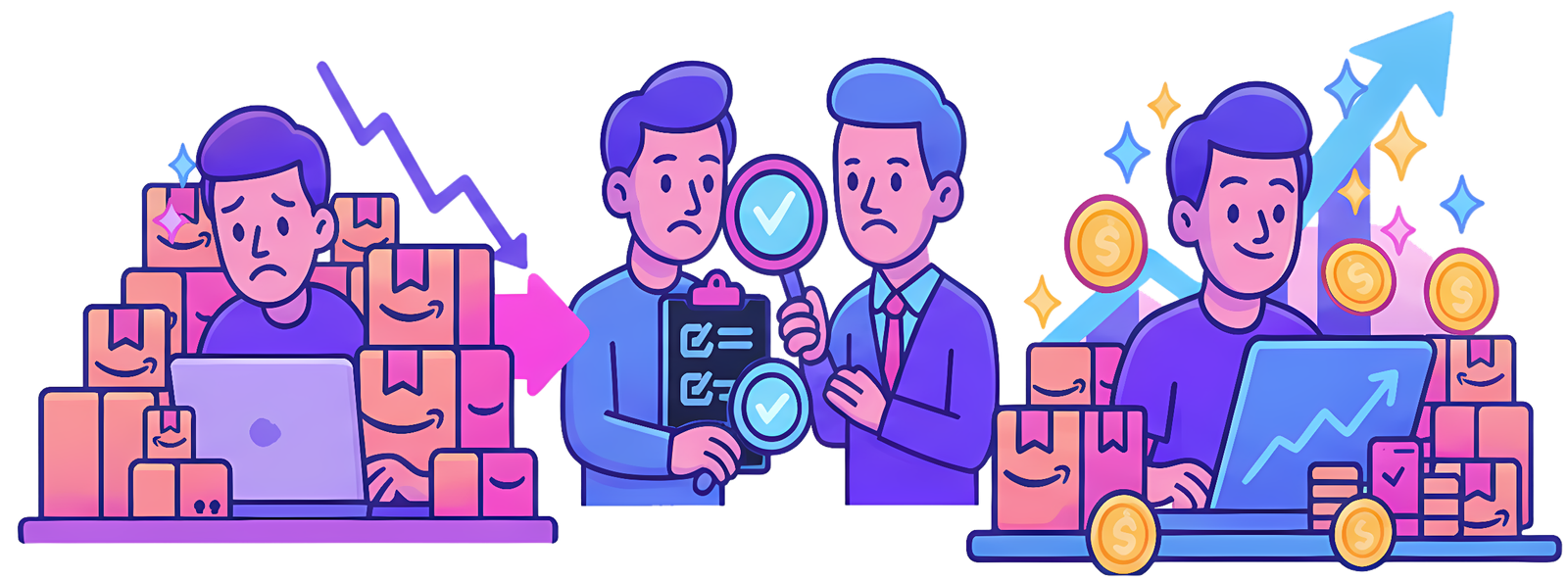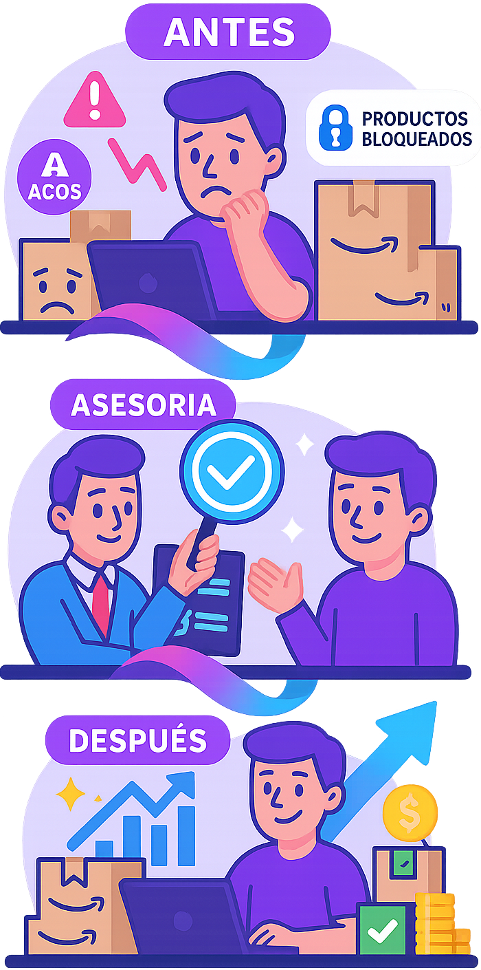 Un diagnóstico preciso de tus problemáticas y oportunidades en Amazon, sin costo ni compromiso.